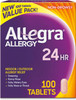 About this item INCLUDES: One (1) 100-count pack of Allegra Adult 24-Hour Allergy Relief Tablets, Non-Drowsy Allergy Medicine 24-HOUR RELIEF: Take Allegra antihistamine pill day or night for round-the-clock relief from your worst allergy symptoms NON-DROWSY: Formulated with active ingredient fexofenadine, a non-drowsy OTC medication with 0% brain interference FAST-ACTING: Allegra 24-hour allergy medicine starts working in one hour for fast* relief from sneezing, runny nose, itchy and watery eyes, and itchy nose or throat INDOOR & OUTDOOR ALLERGIES: Use Allegra tablets for outdoor and indoor allergens like pollen, ragweed, grass, trees, dust, mold, and pet dander ALLERGIST RECOMMENDED: Allegra is the No. 1 allergist-recommended non-drowsy brand among OTC oral antihistamines See more product details,INCLUDES: One (1) 100-count pack of Allegra Adult 24-Hour Allergy Relief Tablets, Non-Drowsy Allergy Medicine,24-HOUR RELIEF: Take Allegra antihistamine pill day or night for round-the-clock relief from your worst allergy symptoms,NON-DROWSY: Formulated with active ingredient fexofenadine, a non-drowsy OTC medication with 0% brain interference,FAST-ACTING: Allegra 24-hour allergy medicine starts working in one hour for fast* relief from sneezing, runny nose, itchy and watery eyes, and itchy nose or throat,INDOOR & OUTDOOR ALLERGIES: Use Allegra tablets for outdoor and indoor allergens like pollen, ragweed, grass, trees, dust, mold, and pet dander,ALLERGIST RECOMMENDED: Allegra is the No. 1 allergist-recommended non-drowsy brand among OTC oral antihistamines