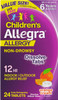 About this item INCLUDES: One (1) 24-count pack of Allegra Children's 12-Hour Orally Dissolving Tablets, Orange Cream Flavor 12-HOUR RELIEF: Give kids one dose of Allegra liquid antihistamine day or night for 12 hours of relief from their worst allergy symptoms NON-DROWSY: Formulated with active ingredient fexofenadine, a non-drowsy OTC medication with 0% brain interference FAST-ACTING: Children's 12-Hour allergy medicine starts working in one hour for relief from sneezing, runny nose, itchy and watery eyes, and itchy nose or throat INDOOR & OUTDOOR ALLERGIES: Use Allegra tablets for seasonal outdoor and indoor allergens like pollen, ragweed, grass, trees, dust, mold, and pet dander ORANGE CREAM TABLETS: This allergy medicine for children 6 years and older comes in an orange cream flavor and disintegrates when chewed ALLERGIST RECOMMENDED: Allegra is the No. 1 allergist-recommended non-drowsy brand among OTC oral antihistamines See more product details,INCLUDES: One (1) 24-count pack of Allegra Children's 12-Hour Orally Dissolving Tablets, Orange Cream Flavor,12-HOUR RELIEF: Give kids one dose of Allegra liquid antihistamine day or night for 12 hours of relief from their worst allergy symptoms,NON-DROWSY: Formulated with active ingredient fexofenadine, a non-drowsy OTC medication with 0% brain interference,FAST-ACTING: Children's 12-Hour allergy medicine starts working in one hour for relief from sneezing, runny nose, itchy and watery eyes, and itchy nose or throat,INDOOR & OUTDOOR ALLERGIES: Use Allegra tablets for seasonal outdoor and indoor allergens like pollen, ragweed, grass, trees, dust, mold, and pet dander,ORANGE CREAM TABLETS: This allergy medicine for children 6 years and older comes in an orange cream flavor and disintegrates when chewed,ALLERGIST RECOMMENDED: Allegra is the No. 1 allergist-recommended non-drowsy brand among OTC oral antihistamines