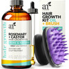 Artnaturals Organic Rosemary & Castor Hair Growth Oil + Scalp Massager Set Hair Styling Oils For Dry, Itchy Scalp, Thickening & Hydration - Scalp Oil Products For Damaged Hair & Split Ends 4.0 Oz