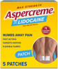 Aspercreme Max Strength Lidocaine Pain Relief Patch (5 Count) For Back Pain, Odor Free Pain Patches