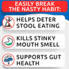 Chews Not To Chew Poop - These Chewables Help Tackle Coprophagia (That Is A Fancy Science Name For Stool Eating), Act As Natural Breath Freshener And Support Healthy Digestion For Your Dog Nasty Habit Addressed With Science - Treats Work As Stool Eating Deterrent By Reducing Stool Odor And Making Poop Less Attractive To Eat. In Addition, By Improving Proper Digestion, Treats Reduce The Urge To Eat Stool In The First Place. Actual Results May Vary And Usually Occur After 2-4 Weeks Of Regular Use Advanced Digestion Support - If Your Pet Has Regular Stomach Issues, Sensitive Or Upset Stomach, These Supplements, Rich With Fiber And Enzymes Will Help Ease This Issue And Maintain Healthy Digestion Bark&Spark Commitment - We Are Keen To Give Best To Our Furry Customers And We Take No Compromise When It Comes To Product Quality. So These Digestion Bites Are Made In The Usa, With Sustainably Sourced, Human Grade Ingredient. Treats Are Suitable For Small And Large Pets Of All Breeds And Ages, From Puppies To Senior Dogs Up To 4 Month Supply - With 120 Chewable Treats Per Jar You Keep Your Pet Healthy While Not Spending A Fortune On Overpriced Supplements. Best Value Help Your Buddy Take Control Over Nasty Poop Eating Habit And Sensitive Stomach Issues With Bark&Spark No Poo Treats. What Is Coprophagia Coprophagia Is A Scientific Term For Stool Eating, Behavior That Is Rather Common For Dogs. Should Be Noted, That Although It Is Obviously A Disgusting Habit, Generally It Wonã¢ÂT Hurt Your Dog Directly, But Rather Is A Symptom Of Underlying Digestion Issues Or Unbalanced Diet. Why Would Dog Eat Excrement Dogs Would Eat Poop Because, For Their Nose At Least, Poop Would Be Appealing. Sounds Disgusting, But Thing Is, With Unbalanced Diet Or Digestion Issues, Dogã¢ÂS Stool Remains High On Protein Making It Smell And Taste Similar To Regular Food. Thus Dog Might Develop This Nasty Habit. How Can You Deter Your Dog From Eating Poop No Poo Treats Are There To Help You On This One. To Deter Your Dog From Poop Eating, Treats Would Balance Digestion, That Would Reduce Stool Odor, Making It Less Appealing For Petã¢ÂS Nose, While Proper Digestion Would Eliminating The Urge To Eat Stool. Added Feature - Chamomile And Other Ingredients Will Freshen Dog'S Breath And Support Periodontal Health. Chewable Supplements Are Suitable For All Breeds, Sizes And Ages, From Puppies To Older Dogs. Directions: Serving: Serve Daily, Amount Based On Dog'S Weight: Up To 40 Lbs. - 1 Chew, 41 To 80 Lbs. - 2 Chews, 81 Lbs. And Over - 4 Chews. Serving Frequency: Daily Serving Method: Serve Whole Serving At Once, Daily At A Consistent Time. Crushing The Chews On Top Of Dog'S Food Is Acceptable Serving Method. No Poo Treats Pure Pumpkin Powder Glucosamine Hews Allergy Relief W/ Omega Omega Treats Probiotics Chews Add To Cart Add To Cart Add To Cart Add To Cart Add To Cart Add To Cart Customer Reviews .Aplus-V2 .Aplus-Review-Right-Padding { Padding-Right: 0.1Rem; } 3.3 Out Of 5 Stars 2,098 .Aplus-V2 .Aplus-Review-Right-Padding { Padding-Right: 0.1Rem; } 3.8 Out Of 5 Stars 467 .Aplus-V2 .Aplus-Review-Right-Padding { Padding-Right: 0.1Rem; } 4.4 Out Of 5 Stars 1,723 .Aplus-V2 .Aplus-Review-Right-Padding { Padding-Right: 0.1Rem; } 4.0 Out Of 5 Stars 5,287 .Aplus-V2 .Aplus-Review-Right-Padding { Padding-Right: 0.1Rem; } 4.3 Out Of 5 Stars 6,591 .Aplus-V2 .Aplus-Review-Right-Padding { Padding-Right: 0.1Rem; } 4.3 Out Of 5 Stars 8,278 Price $22.42 $ 22 . 42 $16.89 $ 16 . 89 $22.87 $ 22 . 87 $23.99 $ 23 . 99 $24.95 $ 24 . 95 $21.98 $ 21 . 98 Key Ingredients Proprietary Enzyme Blend, Yucca, Parsley, Chamomile Pure Pumpkin Fruit Powder Glucosamine, Omega, Chondroitin, Msm Omega-3, Turmeric, Pumpkin Salmon Oil, Epa, Dha Probiotics, Prebiotics, Enzyme Digestion Support Immune Support Skin & Coat Support Allergy Relief Hip & Joint Support No Sugar, No Dairy, No Hormones Breed / Size / Age All Breeds, Sizes, Ages All Breeds, Sizes, Ages All Breeds, Sizes, Ages All Breeds, Sizes, Ages All Breeds, Sizes, Ages All Breeds, Sizes, Ages