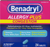 Benadryl Allergy Plus Congestion Ultratabs With Diphenhydramine Hcl Antihistamine & Phenylephrine Hcl Nasal Decongestant, Allergy & Sinus Congestion Relief Tablets, 24 Ct