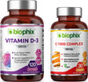 Biophix Vitamin D-3 5000 Iu 120 Softgels - Free Vitamin C-1000 30 Tablets - High-Potency In Extra Virgin Olive Oil Non-Gmo Soy-Free Supports Strong Bones Immune Health