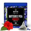 Blue Tea - Butterfly Pea Flower Tea - Hibiscus - 30 Count - Plant Based Tea Bag || Super Anti-Oxidant || Caffeine Free - Non-Bitter - Gluten Free - Flower Based - Vegan | Eco-Conscious Tin Packaging