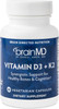 Brainmd Vitamin D3 + K2-60 Capsules - Synergistic Support For Healthy Bones & Cognition - Gluten Free - 60 Servings
