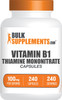Bulksupplements.Com Thiamine Mononitrate Capsules - Thiamine B1 Supplement - Vitamin B1 Capsules - Thiamine 100Mg - Thiamine Supplement - B1 Vitamins - 1 Capsule Per Serving (240 Capsules)