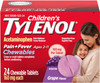 Children'S Tylenol Chewables With 160 Mg Acetaminophen, Pain Reliever & Fever Reducer For Kids' Cold + Flu Symptoms, Headache, Sore Throat & Toothache, Aspirin-Free, Grape Flavor, 24 Ct
