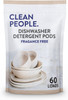 Clean People All Natural Dishwasher Pods - Dishwasher Detergent Pods - Cuts Grease & Rinses Sparkling Clean - Residue-Free - Fragrance Free Dishwashing Pods - Unscented, 60 Pack
