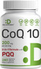Coq10 200Mg & Pqq 200Mcg, 240 Veggie Capsules 2 In 1 Coenzyme Q10 Supplement For Better Absorption Antioxidant Support For Energy, Brain, & Heart Health Non-Gmo