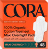 Cora 100% Organic Cotton Topsheet Maxi Pads | Ultra Thin Period Pads With Wings | Maxi Overnight Absorbency | Unscented, Comfortable, Powerfully Absorbent, Leak Protection (48 Count)