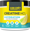 About this item Complete Electrolyte & Vitamin Profile*: CON-CR?T Creatine HCl + Hydration offers a full electrolyte powder profile, including essential electrolytes and vitamins C, B6, and B12, plus a full serving of creatine (CON-CR?T Creatine HCl) (750 mg). Perfect for those seeking an electrolytes powder with no sugar for optimal hydration and wellness. Innovative Performance Hydration*: Elevate your hydration game with our advanced rehydration powder, designed to provide dehydration relief and boost performance. CON-CRET Creatine HCl + Hydration powder helps deliver everyday hydration packed with sodium, magnesium glycinate, potassium, calcium, vitamin C, vitamin B6, and vitamin B12. Natural Creatine Energy*: Our bodies naturally crave creatine for clean functional energy. CON-CRET Creatine HCl fuels every cell in your body providing all the benefits of creatine without side effects. This sugar-free electrolytes formula promotes strength, endurance, and recovery, making it a superior choice for creatine and electrolytes support. Optimal Performance & Everyday Support*: CON-CR?T + Clean Hydration supports peak performance with its electrolyte powder no sugar formula. Whether you're hitting the gym or managing daily tasks, it helps maintain electrolyte balance, improve muscle function, and keep you hydrated. Quality You Can Trust*: Made in the USA at our SQF/GMP facility, our hydrate electrolyte powder is crafted using high-quality domestic and international ingredients. Enjoy a premium, gluten-free, non-GMO, and keto-friendly hydration solution with no artificial sweeteners or dyes, available in delicious lemon-lime flavor. See more product details,Complete Electrolyte & Vitamin Profile*: CON-CR?T Creatine HCl + Hydration offers a full electrolyte powder profile, including essential electrolytes and vitamins C, B6, and B12, plus a full serving of creatine (CON-CR?T Creatine HCl) (750 mg). Perfect for those seeking an electrolytes powder with no sugar for optimal hydration and wellness,Innovative Performance Hydration*: Elevate your hydration game with our advanced rehydration powder, designed to provide dehydration relief and boost performance. CON-CRET Creatine HCl + Hydration powder helps deliver everyday hydration packed with sodium, magnesium glycinate, potassium, calcium, vitamin C, vitamin B6, and vitamin B12,Natural Creatine Energy*: Our bodies naturally crave creatine for clean functional energy. CON-CRET Creatine HCl fuels every cell in your body providing all the benefits of creatine without side effects. This sugar-free electrolytes formula promotes strength, endurance, and recovery, making it a superior choice for creatine and electrolytes support,Optimal Performance & Everyday Support*: CON-CR?T + Clean Hydration supports peak performance with its electrolyte powder no sugar formula. Whether you're hitting the gym or managing daily tasks, it helps maintain electrolyte balance, improve muscle function, and keep you hydrated,Quality You Can Trust*: Made in the USA at our SQF/GMP facility, our hydrate electrolyte powder is crafted using high-quality domestic and international ingredients. Enjoy a premium, gluten-free, non-GMO, and keto-friendly hydration solution with no artificial sweeteners or dyes, available in delicious lemon-lime flavor