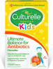 About this item FROM THE PEDIATRICIAN RECOMMENDED PROBIOTIC BRAND: The key strain in Culturelle Kids Ultimate Balance Probiotic, Lactobacillus rhamnosus GG (LGG) - clinically proven to help with occasional tummy troubles, like diarrhea and occasional digestive upset. RESTORE BALANCE: LGG probiotic helps restore the natural balance in your childs digestive tract; works naturally with your childs body to ease diarrhea caused by antibiotic use. SAFE & EASY TO TAKE: Mouthwatering flavor tested & approved by kids; chew 1 tablet daily; for optimal results, continued daily use is suggested for 10 days after completion of antibiotic regimen INGREDIENTS YOU CAN FEEL GREAT ABOUT: Complement your child's healthy lifestyle with a safe, effective and drug-free formula that is also sugar-free, non-GMO, gluten-free, vegan, and dairy-free, working naturally with your childs body HAPPY TUMMIES, HAPPY KIDS Taking antibiotics can cause occasional diarrhea. Culturelle Kids Ultimate Balance for Antibiotics contains LGG, which helps with occasional diarrhea See more product details,FROM THE PEDIATRICIAN RECOMMENDED PROBIOTIC BRAND: The key strain in Culturelle Kids Ultimate Balance Probiotic, Lactobacillus rhamnosus GG (LGG) - clinically proven to help with occasional tummy troubles, like diarrhea and occasional digestive upset,RESTORE BALANCE: LGG probiotic helps restore the natural balance in your childs digestive tract; works naturally with your childs body to ease diarrhea caused by antibiotic use,SAFE & EASY TO TAKE: Mouthwatering flavor tested & approved by kids; chew 1 tablet daily; for optimal results, continued daily use is suggested for 10 days after completion of antibiotic regimen,INGREDIENTS YOU CAN FEEL GREAT ABOUT: Complement your child's healthy lifestyle with a safe, effective and drug-free formula that is also sugar-free, non-GMO, gluten-free, vegan, and dairy-free, working naturally with your childs body,HAPPY TUMMIES, HAPPY KIDS Taking antibiotics can cause occasional diarrhea. Culturelle Kids Ultimate Balance for Antibiotics contains LGG, which helps with occasional diarrhea