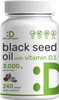 Deal Supplement Black Seed Oil, 240 Softgels Cold-Pressed Nigella Sativa, Naturally Occurring Thymoquinone (Tq) Non-Gmo, No Gluten Black Cumin Seed Liquid Capsules With Vitamin D3