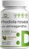 Deal Supplement Rhodiola Rosea With Ashwagandha 5,000Mg Per Serving, 240 Veggie Capsules Max Strength 10:1 Root Extract Adaptogenic Supplements For Relaxation, Energy, & Brain Health Non-Gmo