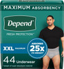 Depend Fresh Protection Incontinence Underwear For Men, Extra-Extra-Large (55ÃÂ64" Waist), 44 Count (2 Packs Of 22) Maximum Absorbency: Depend Menã¢ÂS Bladder Leakage Underwear Features A Super Absorbent Core Which Absorbs 25X Its Weight* And Turns Liquid Into Gel For All-Day Protection (*Weight Of Super Absorbent Material) 2X Drier Than Before: Dependã¢ÂS Improved Liner Wicks Wetness Away From Your Skin To Help Keep You Dry All Day Odor Control: Depend Menã¢ÂS Underwear For Heavy Bladder Leaks Helps Neutralize And Lock In Odors By Turning Liquid Into Gel So You Can Feel Comfortable And Confident Comfort: Depend Fresh Protection Is Unlike Bulky Adult Diapers And Features A Soft, Flexible Fabric For A Comfortable Fit Help Protect Against Bladder Leaks With Depend Fresh Protection Adult Incontinence Underwear For Men With Maximum Absorbencyã¢ÂFor All Day Protection Guaranteed*. Depend Is Unlike Bulky Adult Diapers. Our Bladder Leakage Underwear Features A Super Absorbent Core That Absorbs 25X** Its Weight, Turns Liquid Into Gel, And Helps Neutralize Odors. Our Technology Features A Liner That Helps Keep You Dry Throughout The Day By Wicking Wetness Away From Your Skin. Comfortably Live Your Life With Bladder Leakunderwear That Features A Discreet Fit, Soft And Smooth Fabric, And A High-Performance Waistband That Helps Keep Underwear Securely In Place. Find Your Fit With Four Sizes Sizesã¢ÂSmall/Medium (26ÃÂ34" Waist), Large (35ÃÂ43" Waist), Extra-Large (44ÃÂ54" Waist) And Extra-Extra-Large (55ÃÂ64" Waist)ÃÂIn A Neutral Grey Color. Depend Incontinence Products Are Also Hsa/Fsa-Eligible In The U.S. Also Check Out Our Depend Night Defense Adult Incontinence Underwear For Men To Help Protect Against Nighttime Bladder Leaks! (*If Youã¢ÂRe Not Completely Satisfied With The Fit Of Your Depend Incontinence Underwear, We Can Help. Purchase By 12/31/24. Mail In By 1/31/25. Online Access Required. Limit 1 Per Household. Original Receipt/Upc Required. Restrictions Apply. See Depend Website For Details) (**Weight Of Super Absorbent Material)