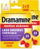 Dramamine Chewable Less Drowsy, Motion Sickness Relief, Raspberry Cream Flavor, 12 Count, 2 Pack