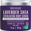 First Botany, Lavender Oil Body Scrub Exfoliator With Shea Butter Stem Cells Grapefruit Oil Exfoliating Salt Scrub Body Face Souffle Helps Moisturizing Skin Acne Cellulite Dead Skin Scar Wrinkle 11Oz