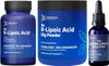 Bullet Points : 1 > No Fillers: In Comparison To Capsules, Powdered Na Rala And Liquid Alpha Lipoic Acid Contains No Additives Or Fillers, Providing A More Concentrated And Pure Form Of Na R-Lipoic Acid Without Unnecessary Additional Ingredients 2 > Easy Mixing & Rapid Absorption: Lipoic Acid Can Be Easily Mixed Into As Water And Is Generally Absorbed More Quickly, Leading To Faster And More Effective Utilization Of Its Beneficial Properties 3 > Antioxidant Protection - As A Powerful Antioxidant, Bio-Enhanced Alpha Lipoic Acid And R-Lipoic Acid Protects Against Oxidative Stress, Rejuvenating The Body'S Cells, And Keeping You Strong And Healthy 4 > Energy Production And Metabolic Support - Our Mitochondria Produce The Energy That Powers Our Cells. However, They Lose Optimal Function Over Time. Lipoic Acid Helps Increase Energy Conversion And Maintain Cellular Health 5 > Quality Ingredients - Made In A Cgmp And A Usda Organic-Certified Facility To Meet Stringent Us Pharmacopeia Standards For Quality, Purity, Potency, And Disintegration Description : One Bottle Of R-Lipoic Acid 115Mg 120 Caps, One Tub Of Na R-Lipoic Acid 50G Powder And One Bottle Of The Alpha Lipoic Solution