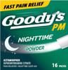 Goody'S Pm For Pain With Sleeplessness Nighttime Powder Temporarily Relieves Occasional Headaches And Minor Aches And Pains With Accompanying Sleeplessnessdual Action Powder Formula Works Fast To Relieve Paincontains 500 Mg Acetaminophen And 38 Mg Diphenhydramine Citratepowder Comes In Convenient, On-The-Go Stick Packs That Are Easier To Open And Faster To Takecontains 1 Box Of Goody'S Pm For Pain With Sleeplessness Nighttime Powder, 16 Stick Powders; For Use By Adults And Children 12 Years And Olderget Relief And Rest At The Speed Of Powder! Goody'S Pm For Pain With Sleeplessness Nighttime Powder Temporarily Relieves Occasional Headaches And Minor Aches And Pains With Accompanying Sleeplessness. Goody'S Works Fast To Relieve Pain. With 500 Mg Acetaminophen And 38 Mg Diphenhydramine Citrate, Goody'S Pm For Pain With Sleeplessness Nighttime Powder Comes In Convenient, On-The-Go Stick Packs That Are Easier To Open And Faster To Take. Goody'S Powder Can Be Taken 2 Ways Pour On The Back Of The Tongue And Follow With A Non-Alcoholic Beverage Or Mix With A Non-Alcoholic Beverage And Drink. Goody'S Does Everything Fast. For Use By Adults And Children 12 Years And Older. Read All Product Information Before Using. Also Available In Extra Strength Headache Powder, Extra Strength Cool Orange Flavor, Extra Strength Mixed Fruit Blast Flavor And Back And Body Pain Relief. There'S Fast And There'S Goody'S Fast. Goody'S Powders Are Fsa- And Hsa-Eligible In The U.S
