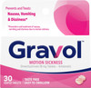 Live life uninterrupted with Gravol anti-nausea medication; one 30-count bottle of 50 mg easy to swallow coated tablets are great for carsickness, airsickness, sea sickness, and dizziness on the go