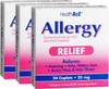 Healtha2Z Allergy Relief, Diphenhydramine 25Mg Healtha2Z Allergy Relief, Diphenhydramine 25Mg, 3 X 24 Caplets, 72 Caplets Total Healtha2Z Allergy Relief Diphenhydramine 25Mg Relieves Indoor And Outdoor Allergy Symptoms. It Is Effective And Safe When Treating Allergy Related Symptoms Such As Red And Inflamed Eyes, Runny Nose, Sneezing, Itchy Watery Eyes Hives, Rashes And Other Allergy Symptoms Caused Either By Seasonal Irritants Or Other Allergy Producing Annoyances. Active Ingredient (In Each Capsule): Diphenhydramine Hcl 25 Mg Uses Temporarily Relieves These Symptoms Due To Hay Fever Or Other Upper Respiratory Allergies: Runny Nose Itchy, Watery Eyes Itching Of The Nose Or Throat Temporarily Relieves These Symptoms Due To The Common Cold: Runny Nose, Sneezing Why Healtha2Z Allergy Relief Diphenhydramine 25Mg Multi-Symptom Relief Active Diphenhydramine 25Mg Provides Temporary Allergy Relief From Runny Nose, Sneezing, Itching Of The Nose Or Throat And Itchy, Watery Eyes. Also Temporarily Relieves Runny Nose And Sneezing Due To The Common Cold. For Adults And Children Healtha2Z Allergy Relief Diphenhydramine 25Mg Is Suitable For Adults And Children 6 Years Of Age And Older. Rest Better Diphenhydramine Hcl Can Cause Drowsiness Which Can Help Your Body Relax For A Better NightâS Rest. (Avoid Driving After Use.) Directions Take Every 4 To 6 Hours, Or As Directed By A Doctor. Do Not Take More Than 6 Times In 24 Hours. Adults And Children 12 Years And Over: 1 To 2 Tablets. Children 6 To Under 12 Years: 1 Tablet. Children Under 6 Years: Do Not Use. What Is Diphenhydramine Diphenhydramine Is Used To Relieve Red, Irritated, Itchy, Watery Eyes; Sneezing; And Runny Nose Caused By Hay Fever, Allergies, Or The Common Cold. It Does So By Blocking The Bodies Histamine Response To The Allergens. Diphenhydramine Is Also Used To Prevent And Treat Motion Sickness