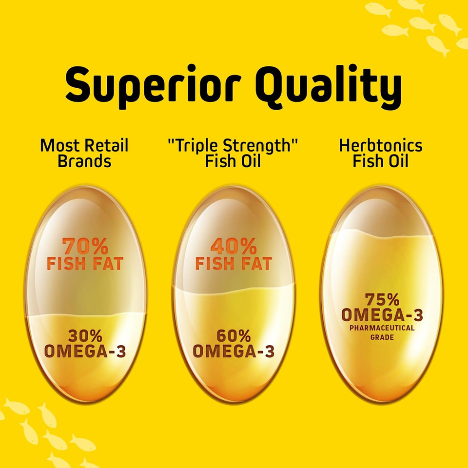 Herbtonics Omega 3 Fish Oil 1250Mg - High Epa 450Mg + Dha 300Mg For Heart & Brain Health | Triple Strength, Burpless Lemon Flavor, Wild Caught | 180 Softgels (Up To 6 Month Supply)