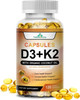 High Potency Vitamin D3-5000Iu + K2, 100% Vegan Sourced W/Organic Coconut Oil, Gluten Free, Gmo-Free, For Bone And Heart Health, 120 Softgels 60-Day Supply