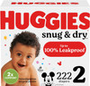 Huggies Size 2 Diapers, Snug & Dry Baby Diapers, Size 2 (12-18 Lbs), 222 Count (3 Packs Of 74), Packaging May Vary