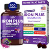 Iron Gummies Supplements For Adults (Women, Men) And Kids Grape Flavor- Supports Anemia, Energy And Focus Levels 100 Count