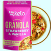 SATISFY YOUR CRAVINGS WITHOUT GUILT Indulge in Kiss My Keto granola strawberry flavor. Kiss My Keto granola strawberry and vanilla is mixed with coconut oil for healthy fat. Low carb cereal keto style is the perfect way to satisfy breakfast cravings!