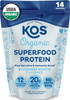 Kos Plant Based Protein Powder, No Erythritol, Blueberry Muffin - Organic Pea Protein Blend, Superfood With Spirulina & Immune Support Blend - Dairy Free, Meal Replacement For Women & Men, 14 Servings