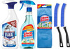 Limescale Remover Spray 500ml, Glass Cleaner Spray 500ml, Streak-Free Microfibre Cloth, 2x Blue Crevice Brushes Bathroom & Glass Cleaning Bundle for Hard Water Stains, Shower Screens & Windows