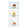 About this item VENTILATED & COMFORTABLE SHIELD: These cute pacifiers for babies have a curved sterilizing shield with openings to keep baby comfortable, prevent moisture build-up, and allow babys skin to breathe. SILICONE NIPPLE: The BPA-free silicone boy and girl pacifier 0-6 months has the signature MAM design, with silky SkinSoft material and a symmetrical shape that's ideal for jaw and teeth development. GLOWS IN THE DARK: Two night pacifiers for baby, glows in the dark, making it easy for you to locate quickly at night without any stumbling and searching, helping your baby sleep better. SYMMETRICAL DESIGN: The breastfeed pacifier for babies is fun and functional. The curved shield with wide openings are always right-side up and prevent skin irritation with maximum airflow. HIGH QUALITY: Approved by 94% of babies*, our 100% BPA & BPS free silicone pacifiers meet or exceed US safety standards and are extremely durable while being soft and flexible for your baby's comfort. See more product details,VENTILATED & COMFORTABLE SHIELD: These cute pacifiers for babies have a curved sterilizing shield with openings to keep baby comfortable, prevent moisture build-up, and allow babys skin to breathe,SILICONE NIPPLE: The BPA-free silicone boy and girl pacifier 0-6 months has the signature MAM design, with silky SkinSoft material and a symmetrical shape that's ideal for jaw and teeth development,GLOWS IN THE DARK: Two night pacifiers for baby, glows in the dark, making it easy for you to locate quickly at night without any stumbling and searching, helping your baby sleep better,SYMMETRICAL DESIGN: The breastfeed pacifier for babies is fun and functional. The curved shield with wide openings are always right-side up and prevent skin irritation with maximum airflow,HIGH QUALITY: Approved by 94% of babies*, our 100% BPA & BPS free silicone pacifiers meet or exceed US safety standards and are extremely durable while being soft and flexible for your baby's comfort