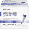 Efficient and convenient blood sampling: McKesson Push-Button Safety Lancets provide a better way to obtain blood samples quickly and comfortably, delivering accurate results with the touch of a button for enhanced efficiency and convenience Painless and gentle sampling: The gamma-sterilized needle of these lancets is fully covered and protected with a sterility tab, ensuring reliability and minimizing pain. The electro-polished, silicone-coated needle with high puncture speed facilitates healing and enables gentle fingertip and heel sampling Optimal safety and reliability: Available in a range of fixed depths for optimized needle exposure, these safety lancets guarantee adequate blood flow. The enhanced safety features include a sterility tab and a self-destructing activation mechanism, providing peace of mind during blood sampling Easy-to-use and intuitive design: McKesson's retractable lancets feature an intuitive, two-step operation that requires no lancet loading, making them easy to handle. The low firing force ensures a comfortable experience for users Color-coded for convenience: Available in multiple gauges, the color-coded design allows for easy gauge identification, making it simple to choose the right lancet for your needs. Plus, these lancets are disposable for convenient single-use, ensuring hygiene and eliminating the need for reusing lancets See more product details,Efficient and convenient blood sampling: McKesson Push-Button Safety Lancets provide a better way to obtain blood samples quickly and comfortably, delivering accurate results with the touch of a button for enhanced efficiency and convenience,Painless and gentle sampling: The gamma-sterilized needle of these lancets is fully covered and protected with a sterility tab, ensuring reliability and minimizing pain. The electro-polished, silicone-coated needle with high puncture speed facilitates healing and enables gentle fingertip and heel sampling,Optimal safety and reliability: Available in a range of fixed depths for optimized needle exposure, these safety lancets guarantee adequate blood flow. The enhanced safety features include a sterility tab and a self-destructing activation mechanism, providing peace of mind during blood sampling,Easy-to-use and intuitive design: McKesson's retractable lancets feature an intuitive, two-step operation that requires no lancet loading, making them easy to handle. The low firing force ensures a comfortable experience for users,Color-coded for convenience: Available in multiple gauges, the color-coded design allows for easy gauge identification, making it simple to choose the right lancet for your needs. Plus, these lancets are disposable for convenient single-use, ensuring hygiene and eliminating the need for reusing lancets