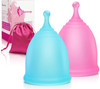 Menstrual Cup; Reusable Medical-Grade Silicone Menstrual Cups Set Of 2; Soft Tampon And Pad Alternative Period Cups For Light Flow (Small, Pink & Blue)