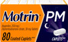 80-count bottle of Motrin PM Pain Relief Caplets with ibuprofen and diphenhydramine sleep aid provides all-night pain relief and contains an effective sleep aid to help ease your body's aches so that you can fall asleep and stay asleep