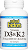 Natural Factors, Vitamin D3 & K2 1000 Iu And 120 Mcg, Supports Bone And Vascular Health, 60 Softgels