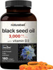 Naturebell Cold Pressed Black Seed Oil 3,000Mg Per Serving With Vitamin D3 2,000Iu, 180 Softgels | Egyptian Nigella Sativa, Odorless Black Cumin Seed, Virgin Liquid Oil Capsules Non-Gmo