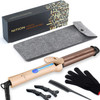 Bullet Points : 1 > Innovative Healthy Styling By Innact Tech:The 5-In-1 1 14" Ceramic Heating Barrel Is Coated With Mixture Of Nano Silver, Argan Oil, Tourmaline & Titanium Which Do Great Benefit The Hairs By Locking In Natural Moisture And Transforming Frizzy, It Avoid Pulling Or Damaging Hair While Styling, Leaves Hair More Shiny, Sleek And Healthy, Anti-Static 2 >One Step Operation Without Any Buttons. By Simple Revolving The End. Rotate Clockwise To Power On And Increase The Temperature, Anticlockwise To Decrease And Power Off. Without Any Buttons On The Body, Looks More Concise Style And Avoid Hitting The Buttons Compare To The Traditional Curl Wand. 6 Precise Temps Options:265/300/340/375/410/450°F For All Hair Type. (*Tips:Please Kind Read Manual For Curling Tutorial & Temps Sellection Before Styling!) 3 >Unique Built-In C-Sensor Feature (Auto Temperature Calibrating) And Fast Up Heating Technology Enable The Barrel To Be Steady And Evenly Heating, Achieve The Best Style Effect With Long Lasting. The 360° Rotatable Anti-Scald Insulated Wand Tip Not Just Gives More Convenience While Curling, But Also Help To Avoid Heat-Conducting Flow Form The Barrel 4 >60 Minutes Auto Shut Off Functionality. Dual Voltage Compatible (100V-240V) For Worldwide Usage 5 >This Set Comes With A Travel Pouch Bag, A Heat-Resistance Glove,1Pc*Salon Comb And 2Pc*Salon Hair Clips, Making It To Be Your Closed Travel Companion. Extra-Long Salon Power Cord (9Ft & 360° Swivel) With Velcro Straps & Hanging Hook Description : Nition Professional 1 14 Inch Curling Iron Argan Oil Ceramic Tourmaline Titanium Coating Barrel Salon Curling Wand Lcd 265°F-450°F For All Hair Type,Ions Hair Curler Waver Maker,Dual Voltagechampagne Gold