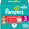 Pampers Cruisers 360 Diapers - Size 3, 136 Count, Pull-On Disposable Baby Diapers, Gap-Free Fit