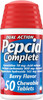 50-Count Bottle Of Pepcid Complete Acid Reducer + Antacid Chewable Tablets With Famotidine + Antacid In Berry Flavor To Help Provide Fast Heartburn Relief From Acid Indigestionjust One Acid Reducer + Antacid Chew Starts Relieving Indigestion In Seconds For Effective Acid Control That Lasts All Day Or All Night (Based On 9-Hour Acid Control Studies During The Day And 12-Hour Acid Control Studies During The Night)Each Chewable Heartburn Reliever Tablet Is Specially Formulated With 10 Milligrams Of Famotidine, A Known Acid Reducer, Plus 800 Milligrams Of Calcium Carbonate And 165 Milligrams Of Magnesium Hydroxide, Which Are Antacidsthe Chewable Berry-Flavored Heartburn Medicine Features A Dual-Action Formula Containing Both An Acid Reducer And Antacids To Control And Neutralize Acid, And Lasts Longer Than Tums (Tums Is A Registered Trademark Of Glaxosmithkline)Formulated To Relieve Heartburn Due To Acid Indigestion And Sour Stomach, Keep A Bottle Of Pepcid Complete Acid Reducer + Antacid Chewable Tablets At Home And One In The Office To Relieve Heartburn Whenever It Strikesproduct Description Quickly Relieve Heartburn And Reduce Acid Associated With Acid Indigestion And Sour Stomach With Pepcid Complete Acid Reducer + Antacid Chewable Tablets. These Berry-Flavored Heartburn Relief Antacid Chews Combine A Fast-Working Antacid And Long-Lasting Acid Reducer To Help Control Acid All Day Or All Night.* Formulated With 10 Mg Of The Acid Reducer Famotidine, 800 Mg Of The Antacid Calcium Carbonate And 165 Mg Of The Antacid Magnesium Hydroxide Per Tablet, This Heartburn Reliever Helps To Neutralize And Control Acid. The Dual-Action Formula Starts Working In Seconds And Lasts Longer Than Tums. Whether At Brunch Or A New Food Spot, Use Pepcid Complete Berry Flavored Chewables For Fast-Acting Heartburn Relief So You Don'T Have To Worry About Hurting Now Or Hurting Later. * Based On 9-Hour Acid Control Studies During The Day And 12-Hour Acid Control Studies During The Night. Acid Control Does Not Imply Symptom Relief. Tums Is A Registered Trademark Of Glaxosmithkline. From The Manufacturer With Dual Action, Reduces And Neutralizes Acid. Works With Just One Tablet! Contains Calcium! Relieves Heartburn Due To Acid Indigestion! 50 ~ Berry Blend Flavored Chewable Tablets. The Benefits Of A Chewable Antacid + Acid Control Of Pepcid Ac = A Single Tablet That Both Reduces And Neutralizes Acid. A Non-Prescription Stomach Medicine - Pepcid Complete Combines An Acid Reducer (Famotidine) With Antacids (Calcium Carbonate And Magnesium Hydroxide) To Relieve Heartburn In Two Different Ways: Acid Reducers Decrease The Production Of New Stomach Acid. Antacids Neutralize Acid That Is Already In The Stomach. The Active Ingredients In Pepcid Complete Have Been Used For Years To Treat Acid-Related Problems In Millions Of People Safely And Effectively. Just 1 Tablet Relieves Heartburn Due To Acid Indigestion. Excess Acid: A Burning Problem - It Is Normal For The Stomach To Produce Acid, Especially After Consuming Food And Beverages. However, Acid In The Stomach May Move Up Into The Wrong Place (The Esophagus), Causing Burning Pain And Discomfort That Interfere With Everyday Activities. Heartburn - Caused By Acid In The Esophagus. Burning Pain/Discomfort In Esophagus. A Valve-Like Muscle Called The Lower Esophageal Sphincter (Les) Is Relaxed In An Open Position. Acid Moves Up From Stomach. Tips For Managing Heartburn. Do Not Lie Flat Or Bend Over Soon After Eating. Do Not Eat Late At Night, Or Just Before Bedtime. Certain Foods Or Drinks Are More Likely To Cause Heartburn, Such As Rich, Spicy, Fatty, And Fired Foods, Chocolate, Caffeine, Alcohol, And Even Some Fruits And Vegetables. Eat Slowly And Do Not Eat Big Meals. If You Are Overweight, Lose Weight. If You Smoke, Quit Smoking. Raise The Head Of Your Bed. Wear Loose Fitting Clothing Around Your Stomach. Proven Effective In Clinical Studies: In Clinical Studies, Pepcid Complete Was Significantly Better Than Placebo Pills In Relieving Heartburn. Onset Of Relief - Percent Of Heartburn Episodes Relieved Within 30 Minutes. 45% Pepcid Complete. 33% Placebo. 38 % Famotidine. 41% Antacid. Duration Of Relief - Percent Of Heartburn Episodes Relieved For At Least 7 Hours. 70% Pepcid Complete. 59% Placebo. 68% Famotidine. 61% Antacid