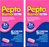 Pepto Bismol Caplets Ultra For Nausea, Heartburn, Indigestion, Upset Stomach, And Diarrhea - 5 Symptom Fast Relief, 24 Ct X 2, 48 Total