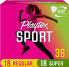 Playtex Sport Tampons, Multipack (36Ct Regular/36Ct Super Absorbency), Fragrance-Free - 72Ct (2 Packs Of 36Ct)