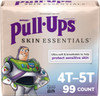 Pull-Ups Boysã¢Â Skin Essentials Potty Training Pants: 99 Toddler Training Pants, Size 4T-5T(38-50 Lbs) (3 Packs Of 33, 99 Training Underwear Total) Ultra Soft & Breathable: Skin Essentials Potty Training Underwear Are Made With Soft And Breathable Materials To Help Protect Sensitive Skin Up To 100% Leak Free: Pull-Ups Skin Essentials Training Pants Feature Targeted Absorbency Where Boys Need It Most Dermatologist-Approved And Hypoallergenic: Our Potty Training Underwear Help Maintain Comfortable And Healthy Skin No Harsh Ingredients: Pull-Ups Skin Essentials Training Pants Are Made Without Fragrance, Elemental Chlorine, Phthalates, Parabens, Natural Rubber Latex And Lotions Put Your Childã¢ÂS Skin Health First During The Potty Training Process With Pull-Ups Skin Essentials Training Pants For Boys. Each Training Underwear Is Designed With Ultra Soft And Breathable Materials That Help To Keep Your Child Comfortable And Help Protect Their Sensitive Skin. Up To 100% Leak Free, Pull-Ups Skin Essentials Potty Training Pants Feature A Targeted Absorbency Zone To Protect Boys Where They Need It Most And Help Maintain Comfortable And Healthy Skin. Dermatologist-Approved Pull-Ups Skin Essentials Toddler Training Pants For Boys Are Hypoallergenic, Free Of Fragrance, Elemental Chlorine, Parabens, Phthalates, Natural Rubber Latex And Lotions. For Little Ones Who Are On-The Go, These Training Pants Feature Soft, Refastenable Sides That Allow For Easy Changing. Our Boys Training Pants Feature Designs From Disneyã¢ÂS Toy Story With Star Graphics That Fade When Wet To Help Motivate Your Child To Stay Dry. Pull Ups Skin Essentials Training Pants And Huggies Skin Essentials Diapers And Wipes Give You Everything You Want For Your Childã¢ÂS Skin And Nothing You Donã¢ÂT. Theyã¢ÂRe Dermatologist-Approved And Designed To Help Keep Skin Clean And Healthy From Baby To Big Kid. When Your Child Is Ready To Begin His Potty-Training Journey, The Pull-Ups Brand Can Help. Visit The Pull-Ups Website For Potty-Training Tips And Resources. Pull-Ups Boys' Skin Essentials Training Underwear Are Available In Sizes 2T-3T (16-34 Lbs), 3T-4T (32-40 Lbs), 4T-5T (38-50 Lbs) And 5T-6T (50+ Lbs)