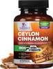 Pure Cinnamon Capsules, Certified Organic Ceylon Cinnamon Pills, Non-Gmo, Gluten-Free, Dairy-Free, Sri Lanka Cinnamon Powder Supplement, Best Vegan True Cinnamomum Vitamins, Sugar Free - 60 Capsules60 Count (Pack Of 1)