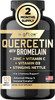 About this item A POWERFUL COMBINATION TO BOOST THE IMMUNE SYSTEM: Quercetin is a plant pigment naturally found in fruits and vegetables. Gflow Quercetin with Bromelain has also vitamin C, Zinc, and Vitamin D3, as well as stinging nettle root. Stinging nettle capsules work together with the other ingredients to help the body absorb the quercetin more effectively. It's a great substitute for quercetin powder, bromelain powder, and zinc supplements THE KEY BENEFITS: Quercetin with Bromelain supports healthy aging, helps to reduce the damage and irritation caused by free radicals, helps promote a normal respiratory function, helps to bolster the immune system, and helps enhance the absorption of zinc. With rapid absorption, our immune support capsules effectively substitutes some slow absorbing gummies, powders and tablets, protecting you from seasonal times ANTIOXIDANT PROPERTIES: Quercetin is one of the most abundant antioxidants in the diet and plays a significant part in assisting your body in fending off free radical damage. Quercetin and zinc work synergistically to neutralize free radicals to maintain a healthy immune system function, also reducing the production of histamines. The veggie capsule form of quercetin 500 mg is available to suit most dietary preferences and promote overall health and well-being ENHANCED WITH STINGING NETTLE: Stinging nettle leaf (urtica dioica) is a naturally occurring plant that has been used as a staple ingredient in traditional medicine for centuries. Each serving contains 500mg of stinging nettle leaf and 200 mg of Vitamin C, an essential vitamin. The powerful combination of nettles with potent quercetin makes this nettle quercetin formula even more potent to support the immune system and the bodys natural response for exposure to environmental challenges SAFE STANDARD QUALITY: Our products are manufactured in the USA. Made in an FDA-registered laboratory that is GMP certified. We hold ourselves to high standards of natural purity, potency, and third party tests. Our supplements are made with non-GMO, gluten-free, sugar-free ingredients, no stimulants, no binders, no filters, no allergens, no chemical or synthetic substitutes See more product details,A POWERFUL COMBINATION TO BOOST THE IMMUNE SYSTEM: Quercetin is a plant pigment naturally found in fruits and vegetables. Gflow Quercetin with Bromelain has also vitamin C, Zinc, and Vitamin D3, as well as stinging nettle root. Stinging nettle capsules work together with the other ingredients to help the body absorb the quercetin more effectively. It's a great substitute for quercetin powder, bromelain powder, and zinc supplements,THE KEY BENEFITS: Quercetin with Bromelain supports healthy aging, helps to reduce the damage and irritation caused by free radicals, helps promote a normal respiratory function, helps to bolster the immune system, and helps enhance the absorption of zinc. With rapid absorption, our immune support capsules effectively substitutes some slow absorbing gummies, powders and tablets, protecting you from seasonal times,ANTIOXIDANT PROPERTIES: Quercetin is one of the most abundant antioxidants in the diet and plays a significant part in assisting your body in fending off free radical damage. Quercetin and zinc work synergistically to neutralize free radicals to maintain a healthy immune system function, also reducing the production of histamines. The veggie capsule form of quercetin 500 mg is available to suit most dietary preferences and promote overall health and well-being,ENHANCED WITH STINGING NETTLE: Stinging nettle leaf (urtica dioica) is a naturally occurring plant that has been used as a staple ingredient in traditional medicine for centuries. Each serving contains 500mg of stinging nettle leaf and 200 mg of Vitamin C, an essential vitamin. The powerful combination of nettles with potent quercetin makes this nettle quercetin formula even more potent to support the immune system and the bodys natural response for exposure to environmental challenges,SAFE STANDARD QUALITY: Our products are manufactured in the USA. Made in an FDA-registered laboratory that is GMP certified. We hold ourselves to high standards of natural purity, potency, and third party tests. Our supplements are made with non-GMO, gluten-free, sugar-free ingredients, no stimulants, no binders, no filters, no allergens, no chemical or synthetic substitutes