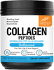 About this item SPECIAL FEATURES Sandhus Collagen Peptides Powder is packed, tested, and distributed in the USA; available as unflavored collagen powder. Contains type-1 collagen which is a vital element for bone, tendon, and connective tissues to support mobility and flexibility.* Type-3 collagen peptides acts as a vital component of our skin and organs.* BENEFITS & USE . Collagen Peptide may help you look healthier and younger as it may replenish Your Skin, Hair, and Nails. These may help with a more youthful appearance DOSAGE & SERVINGS Unflavored hydrolyzed collagen peptides which easily mix with hot or cold liquids, including smoothies, coffee, and tea. Available as unflavored collagen powder in a net weight of 454g delivering 22 servings. EASY TO MIX Offers 19 amino acids which help in vital protein synthesis.* Unflavored hydrolyzed collagen peptides which easily mix with hot or cold liquids, including smoothies, coffee, and tea. PURITY & QUALITY Grass-fed & pasture-raised bovine; Our collagen peptides powder is free from gluten, soy, dairy, nuts, fillers, sweeteners, and artificial flavors; Third-party tested and bottled in NSF-certified facility according to cGMP norms. See more product details,SPECIAL FEATURES Sandhus Collagen Peptides Powder is packed, tested, and distributed in the USA; available as unflavored collagen powder. Contains type-1 collagen which is a vital element for bone, tendon, and connective tissues to support mobility and flexibility.* Type-3 collagen peptides acts as a vital component of our skin and organs,BENEFITS & USE . Collagen Peptide may help you look healthier and younger as it may replenish Your Skin, Hair, and Nails. These may help with a more youthful appearance,DOSAGE & SERVINGS Unflavored hydrolyzed collagen peptides which easily mix with hot or cold liquids, including smoothies, coffee, and tea. Available as unflavored collagen powder in a net weight of 454g delivering 22 servings,EASY TO MIX Offers 19 amino acids which help in vital protein synthesis.* Unflavored hydrolyzed collagen peptides which easily mix with hot or cold liquids, including smoothies, coffee, and tea,PURITY & QUALITY Grass-fed & pasture-raised bovine; Our collagen peptides powder is free from gluten, soy, dairy, nuts, fillers, sweeteners, and artificial flavors; Third-party tested and bottled in NSF-certified facility according to cGMP norms