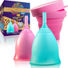 Talisi Menstrual Cups - Set Of 2 Reusable Period Cups - Soft, Flexible, Small & Large Size - Feminine Cup For Women With Collapsible Sterilizer - Alternative Tampon And Pad - Regular, Heavy Flow