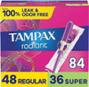 Tampax Radiant Tampons With Leakguard Braid, Super Absorbency, Unscented, 84 Count