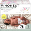 The Honest Company Clean Conscious Diapers | Plant-Based, Sustainable | Rose Blossom + Tutu Cute | Club Box, Size 1 (8-14 Lbs), 78 Count